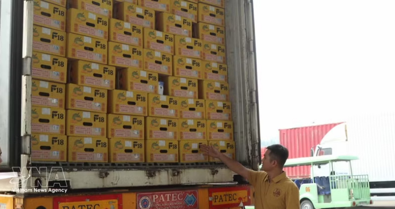 农业与环境部代表指出,榴莲采收工作在主管部门和相关企业监督之下严格进行,果实也在果园内被贴上溯源标签。